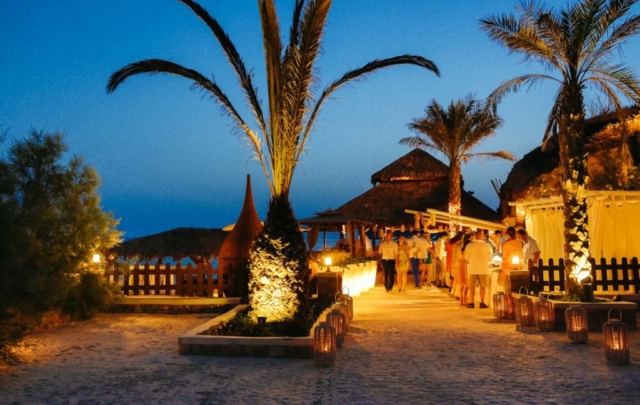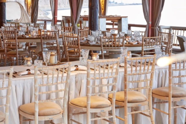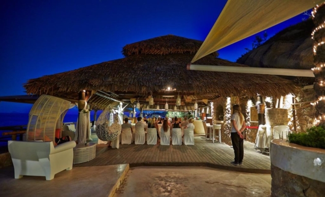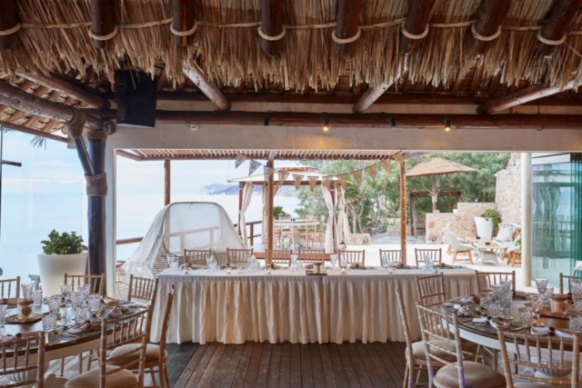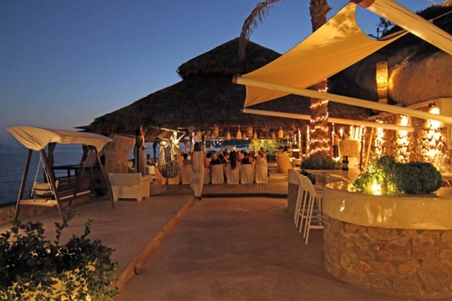 Theros Wave Bar is located itheros wave bar decorationn a secluded place on the Aegean sea on the beach of Vlihada. Wedding ceremony on the beach, surrounded by beautiful nature, the sound of the surf will give an unforgettable experience both happy newlyweds and guests of the holiday.