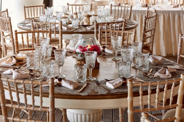 It can easily accommodate 200 guests (contains 25 round tables) leaving plenty free room for dancing.
