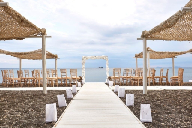 Theros Wave is the hidden jewel of the southern beaches in Santorini – the perfect place for a magical wedding day. This secluded location is ideal for weddings and wedding receptions.