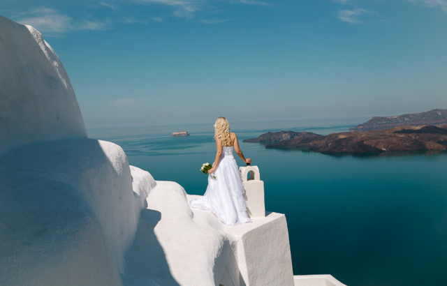 Santa Irini Chapel is a traditional whitewashed chapel over looking the Santorini volcano, the ocean of the caldera side of Santorini and the fantastic every day sunsets which is perfect for your romantic wedding ceremony in Santorini. Exchange wedding vows with the backdrop of the Caldera & Aegean Sea. The ceremony can take place at sunset, the most magical time of the day or during the day time which is also perfect for pictures.